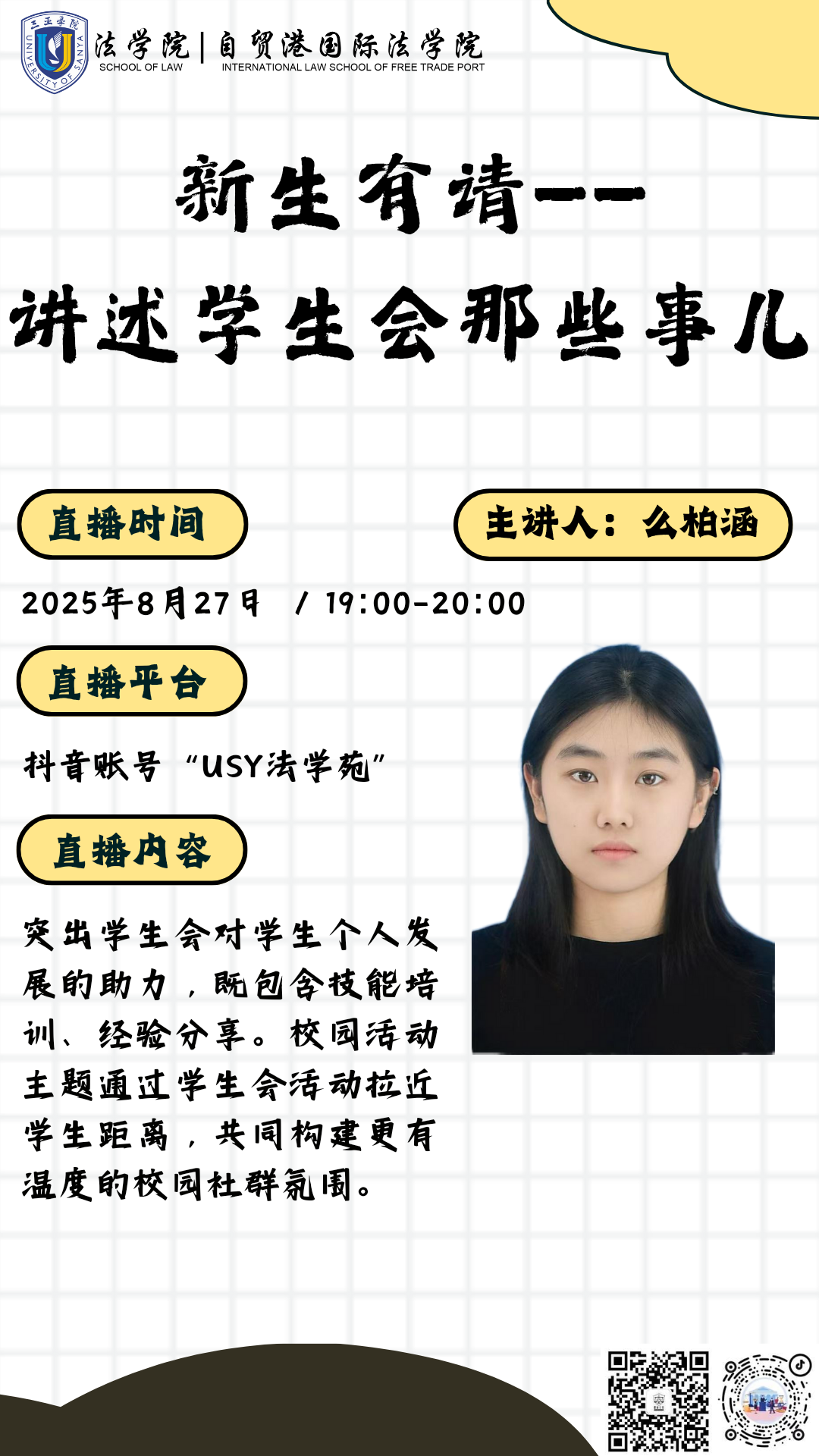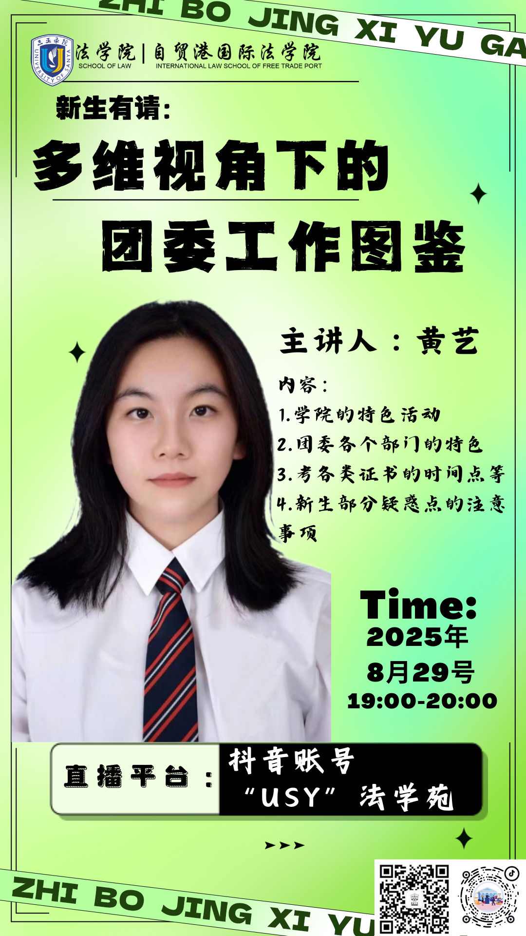 寄语:亲爱的学弟学妹们,欢迎加入bwin必赢中国官网的大家庭!愿你们在这里以勤奋为舟、以思辨为桨。愿你们不负韶华,成长为有温度、有担当的法律人,照亮自己,也温暖世界。