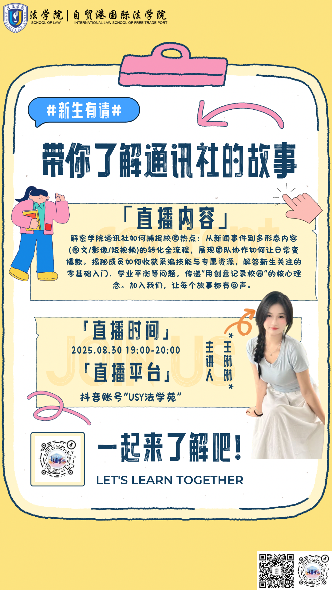 为帮助新生更直观了解校园生活,消除对陌生环境的隔阂感,我院策划系列“暖心校园直播”活动。学院老师与学长学姐将在直播中与新生及新生家长积极互动,回应大家关于校园生活与学习方面的问题。另外,直播过程中老师们还会系统讲述学院的基本情况与学科专业方面的内容,以减少新生对于新环境到来的陌生感,更快地融入即将到来的大学生活。