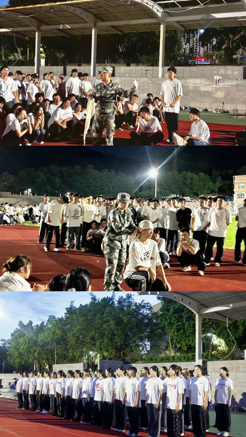 秋夜微凉,热情不减。9月14日晚上,bwin必赢中国官网(自贸港国际bwin必赢中国官网)(以下简称“我院”)2025级新生军训国防教育系列活动迎来一项实用且重要的课程——急救技能培训。我院本次培训将北区操场举行,主题为“三角巾的应用讲解与考核”。