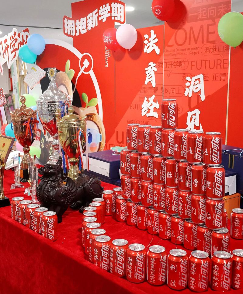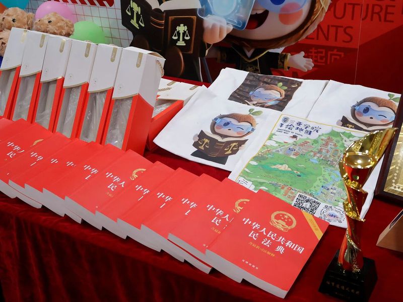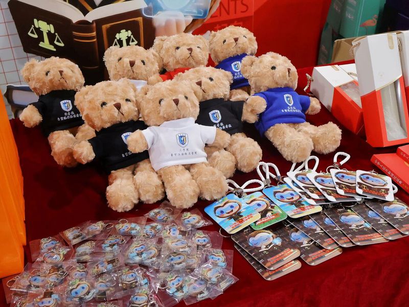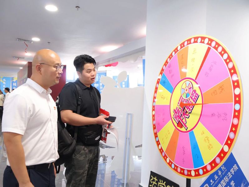 报到现场还设置了游戏转盘和新生大礼包区域,为迎新活动增添了不少乐趣。新生们在完成报到手续后,可以来到游戏区参与转盘游戏。转盘上设置了各种有趣的奖品,如学习类的民法典、定制笔和本、帆布包;生活类的毛巾三件套、夏凉被、杯子、卡套、玩偶;饰品类的冰箱贴和钥匙扣等。新生们转动转盘,随着指针的转动,欢呼声和笑声此起彼伏。