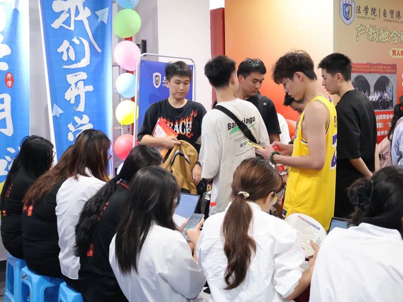 报到现场,法学专业、法学(自贸港法律)专业新生在引导人员的指引下有秩序地排队报到。每一位新生脸上都带着对大学生活的期待与憧憬,工作人员们耐心细致地为新生办理入学手续,讲解报到流程和注意事项。