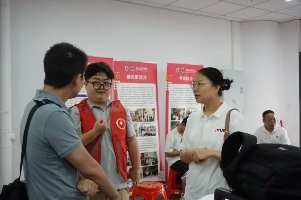 引导人员热情迎接新生和家长,将新生带至报到处,家长引至休息区。两天时间里不断有家长围坐在老师身旁询问问题,刘雅斌副院长、胡宏雁主任等老师负责为家长答疑,介绍教学、转专业、学生管理及就业方向等内容。老师们耐心解答不仅是知识交流,更传递着爱与责任。刘雅斌副院长还向家长们强调学院产教融合,重视实习实践,打造应用型法律人才的战略。休息区还备有茶歇,让家长对孩子的学习生活充满信心。