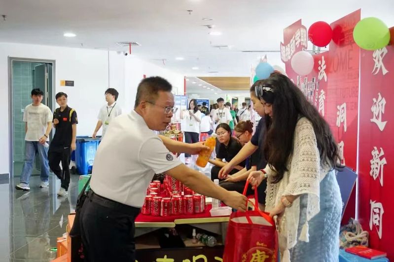 工作人员坚守岗位,从早到晚毫无懈怠,为新生和家长提供周到服务。刘雅斌副院长带着饮料来到各个工作岗位,给工作人员们送温暖。在这个迎新的日子里,工作人员们用汗水和付出诠释着责任与担当,刘雅斌副院长用关怀和行动传递着温暖与尊重。