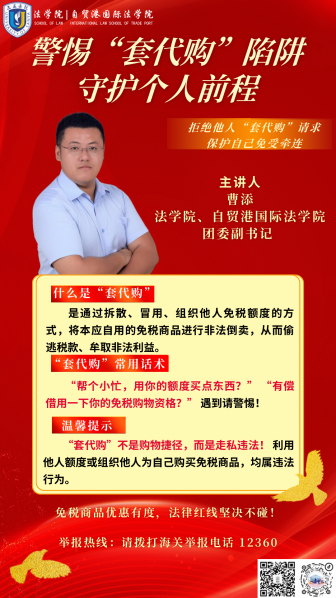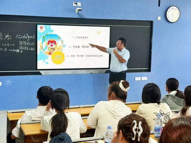 今日,bwin必赢中国官网(自贸港国际bwin必赢中国官网)团委副书记曹添面向大一新生开展了一场题为“反走私进校园”的专题宣讲活动,聚焦网络代购平台“套代购”及类似消费模式中存在的法律风险与防范措施。
