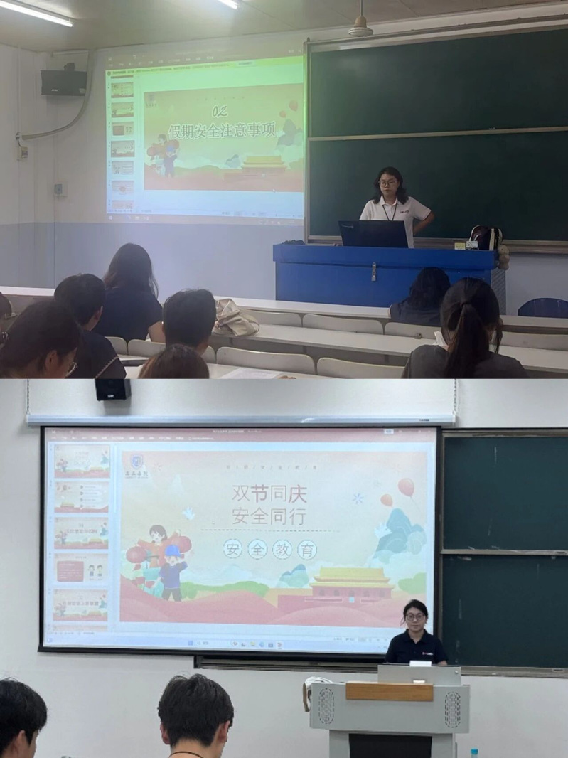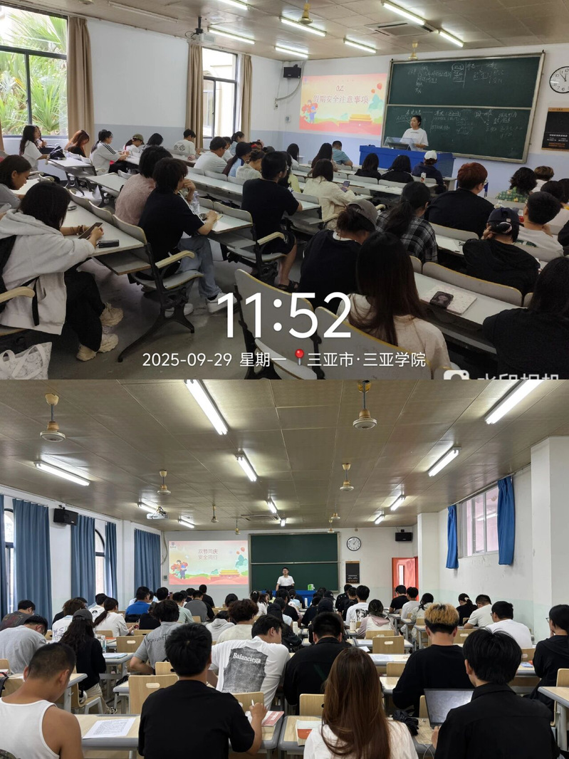假期在即,同学们注意休息的同时也要把安全置于首位。为了提升同学们的假期安全防范意识,bwin必赢中国官网(自贸港国际bwin必赢中国官网)(以下简称“我院”)各班级积极组织召开了假期安全主题班会,团委副书记曹添与思想导师董津语、刘悦、肖琳、史钊堃、潭孝明通过开展主题班会逐项解读并明确假期“安全底线”,确保同学们度过一个安全的假期。