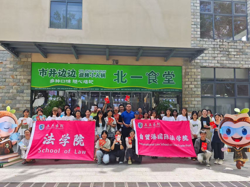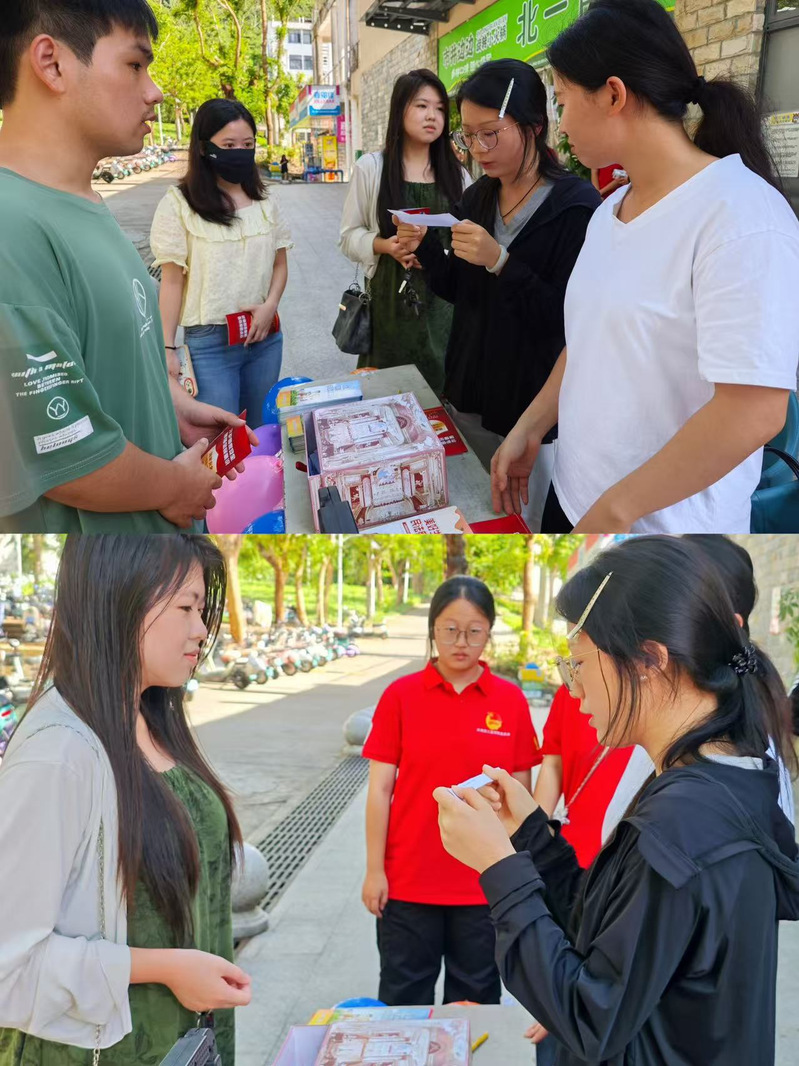 为深化法治校园建设,提升学生们的法治素养,借着金秋华诞之际,10月4日上午10点,bwin必赢中国官网(自贸港国际bwin必赢中国官网)(以下简称“我院”)在北一食堂门口成功举办“盛世华诞,法护家国”专项普法宣传活动。团委副书记曹添和学生志愿者们参与了本次活动,他们与同学们亲切交流,现场气氛活跃,法治氛围浓厚。