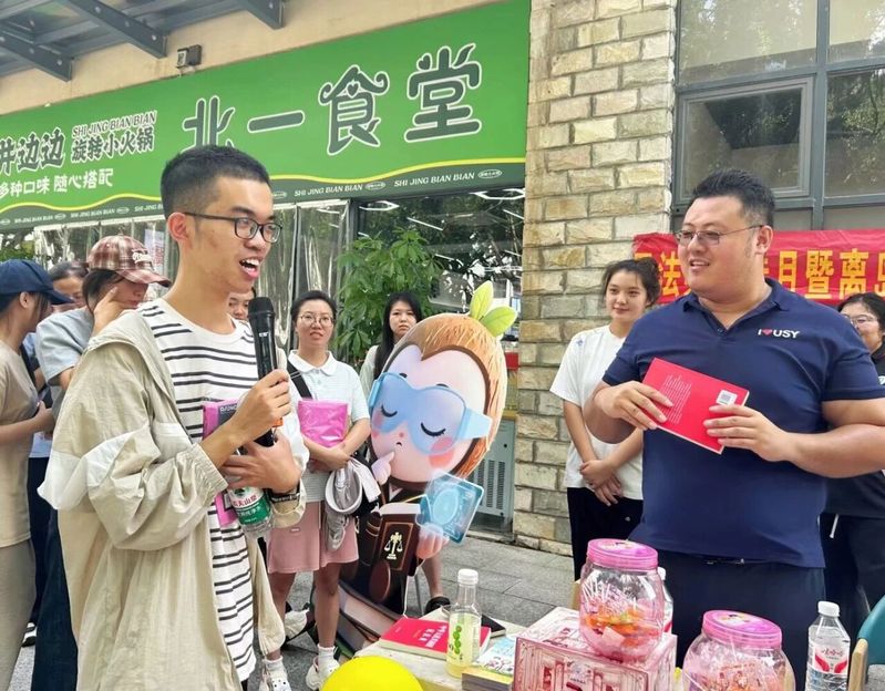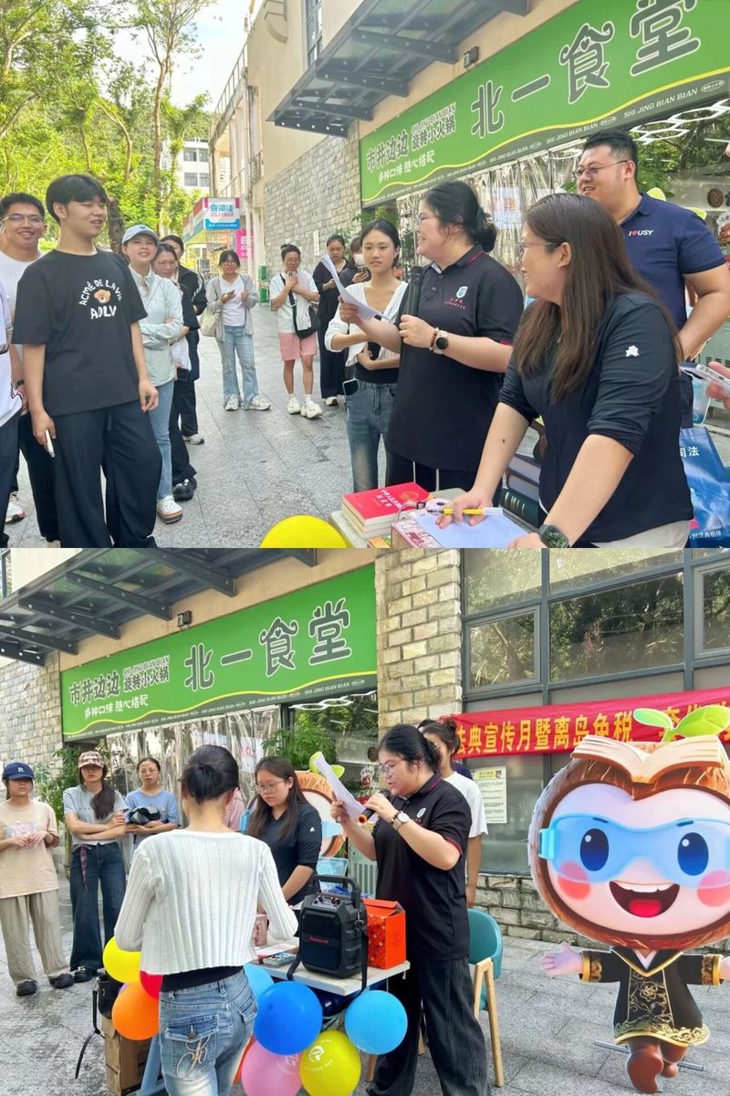 法治是国家长治久安的基石,是社会和谐稳定的保障。2025年10月7日上午十点,bwin必赢中国官网(自贸港国际bwin必赢中国官网)(以下简称“我院”)在北一食堂门口开展以“AI智慧普法”为主题的“AI明法”智慧普法行动。团委副书记曹添和团学组织成员组织了这次活动,其目的是深化同学们的法治意识,培育法治思维,让法治理念内化于心、外化于行。
